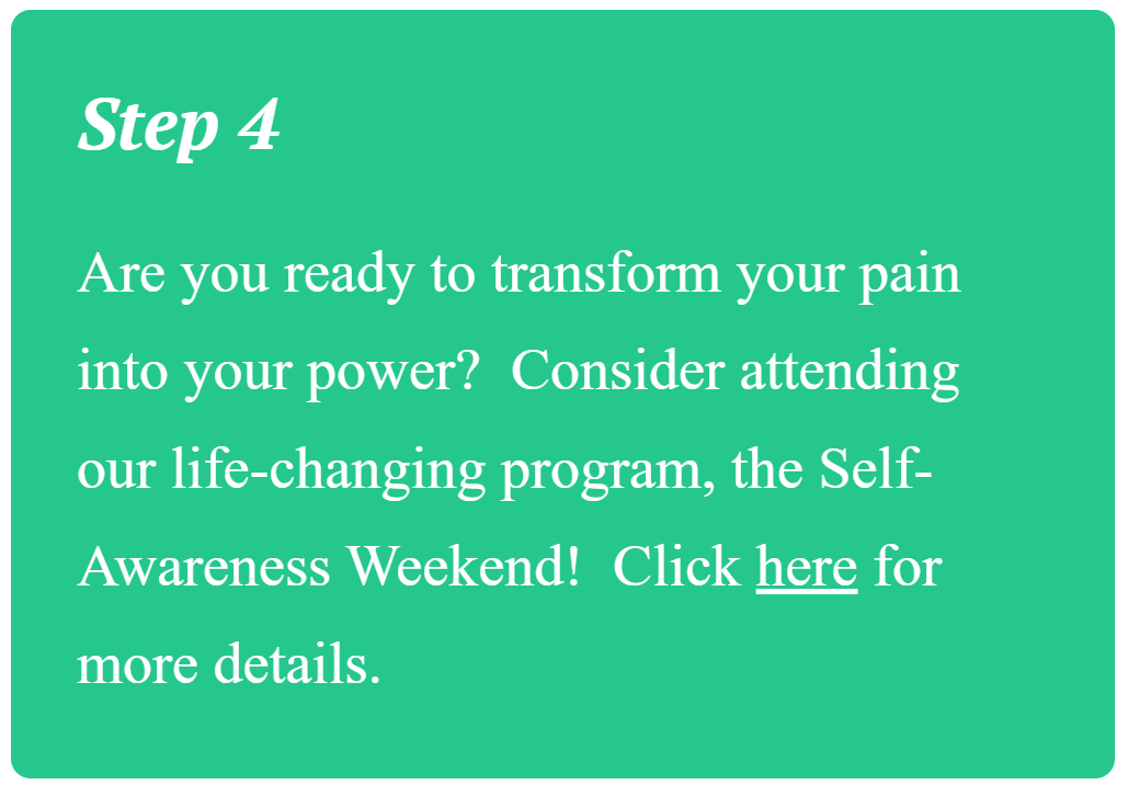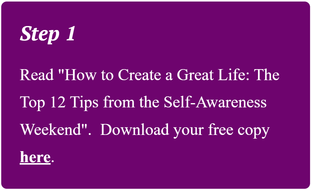 Self-Awareness is the very foundation of who we are, what makes each of us a unique individual - and, ultimately, the key to creating a happy, fulfilled life. It begins with noticing - noticing how we feel, what we think, what habits or behavior patterns we use, what we need to feel safe, happy, and loved. Noticing these things leads us to the next step, which is recognizing if our current thoughts, feelings, and actions are bringing us closer to our dreams and goals, or if they're preventing us from moving forward.